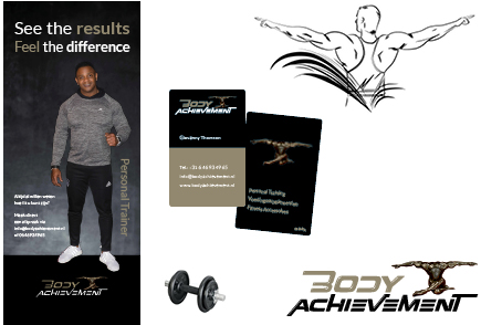 Ontwerp logo, visitekaartjes en banner van 80 x 200 cm. Illustratie voor kledingbedrukking.