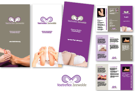 Logo uitwerken na schets van de klant. Concept, vormgeving en dtp serie van drie flyers.